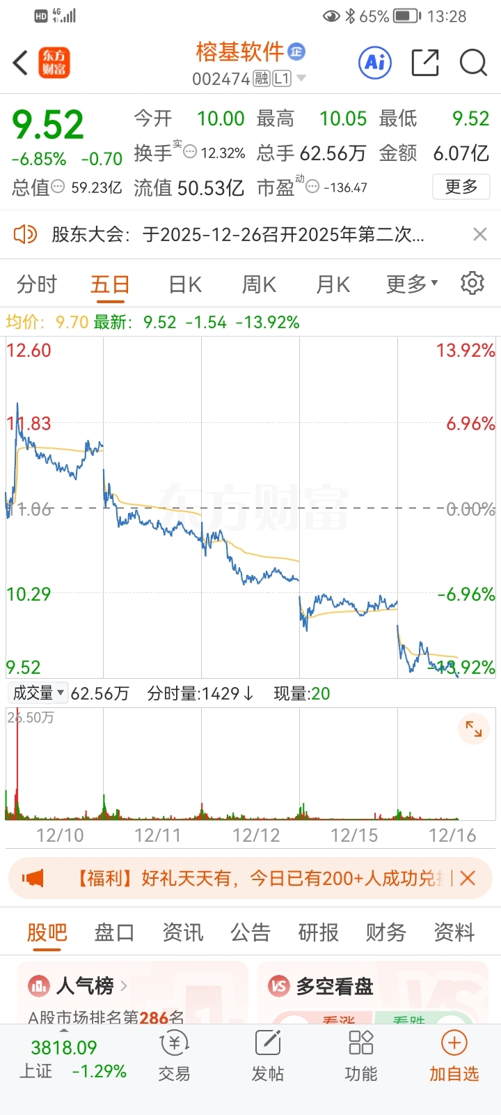 温馨提示: 1.根据《证券法》规定,禁止编造、传播虚假信息或者误导性信息,扰乱证券市场;2.用户在本社区发表的所有资料、言论等仅代表个人观点,与本网站立场无关,不对您构成任何投资建议。用户应基于自己的独立判断,自行决定证券投资并承担相应风险。《东方财富社区管理规定》