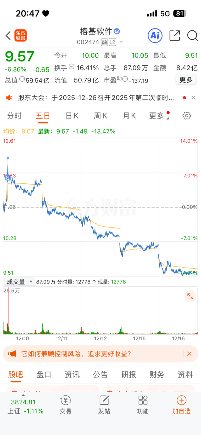 $榕基软件(SZ002474)$ 今天回头看你觉得自己算逃过一个大顶了值得夸奖