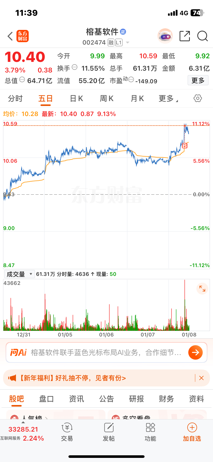 $榕基软件(SZ002474)$ 走到哪里哪里跌,