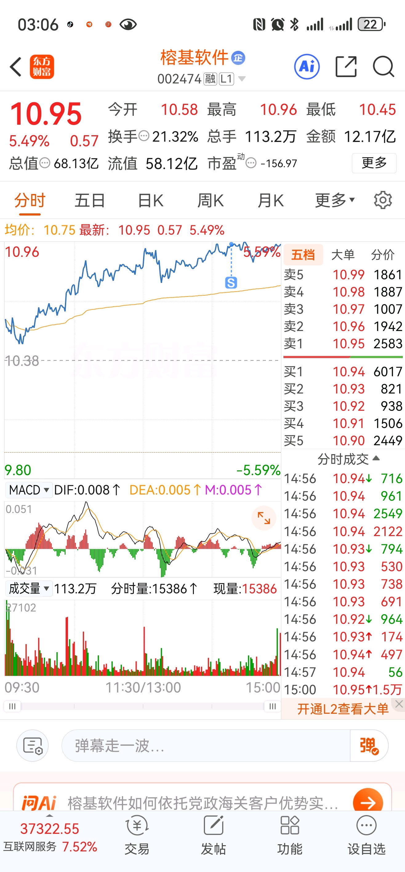 $榕基软件(SZ002474)$ 按我的经验,我逃不了顶,如果“逃顶”都会卖飞,明天还有的涨各位