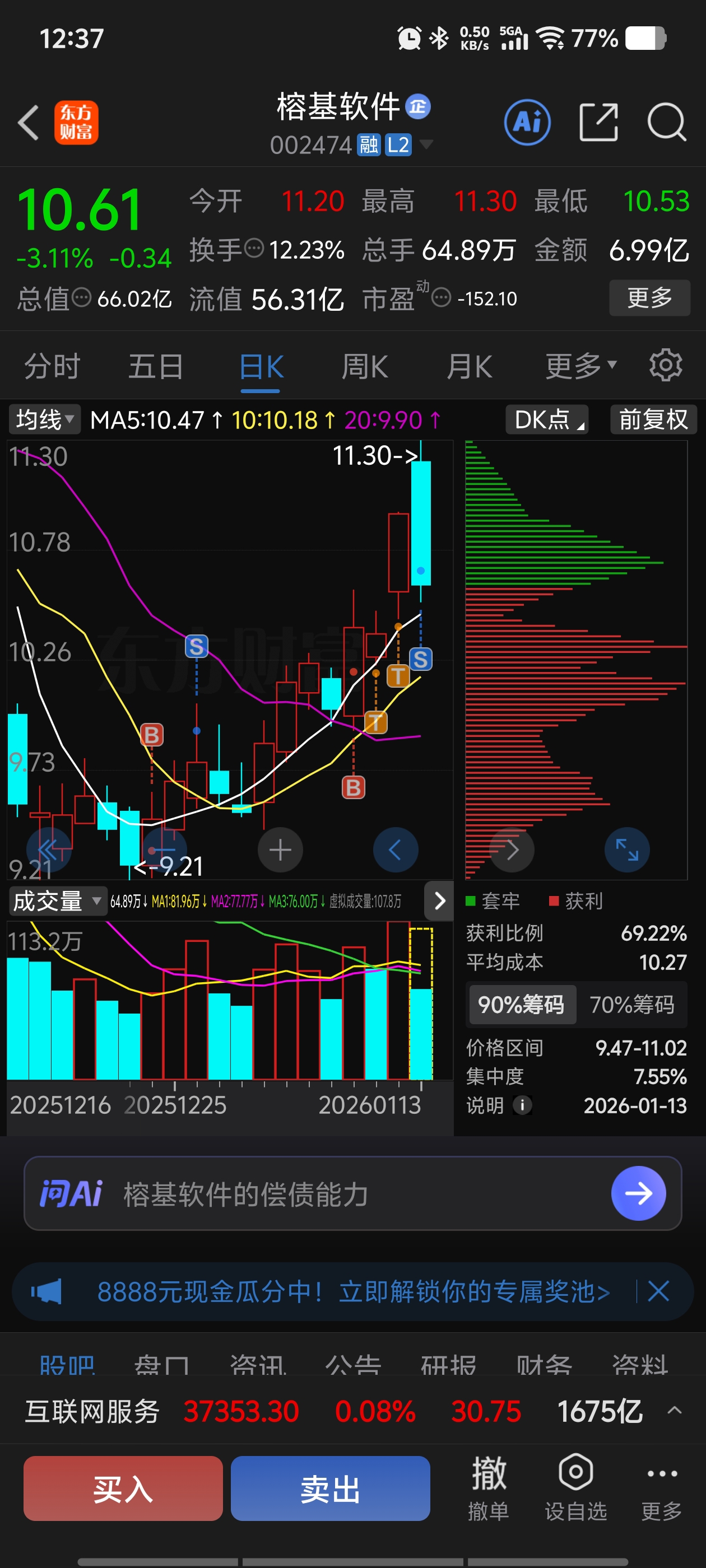 $榕基软件(SZ002474)$ 走了没亏钱 以后也不会买他了