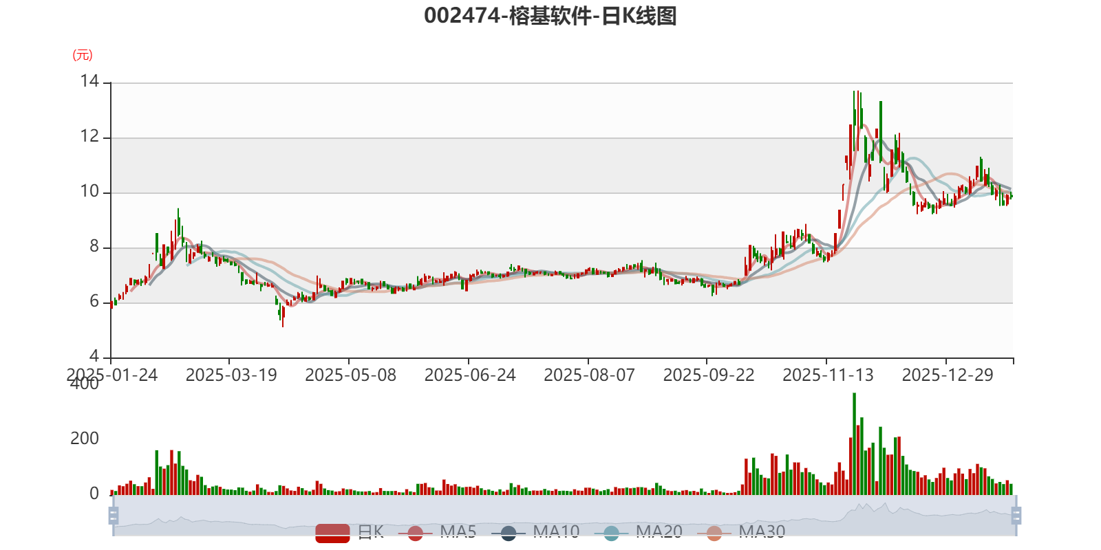 中证智能财讯榕基软件(002474)1月23日晚间披露2025年度业绩预告,预计2025年归母净利润亏损6000万元至8900万元,上年同期亏损8690.29万元;扣非净利润亏损6500万元至9400万元,上年同期亏损9291.28万元;基本每股收益-0.0964元/股至-0.143元/股。以最新收盘价计算,市净率(LF)约4.49倍,市销率(TTM)约12.56倍。