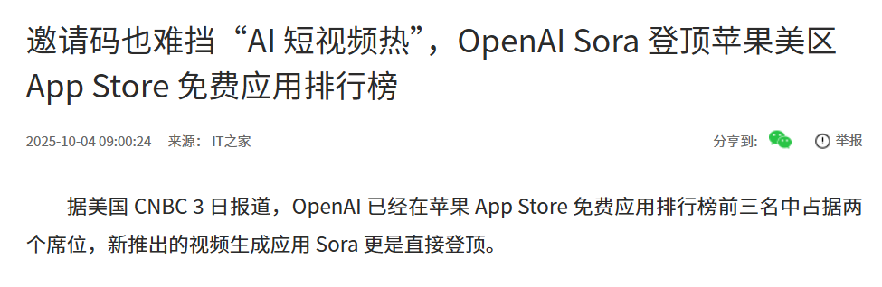 火爆:OpenAI新推出的AI视频应用登顶榜首