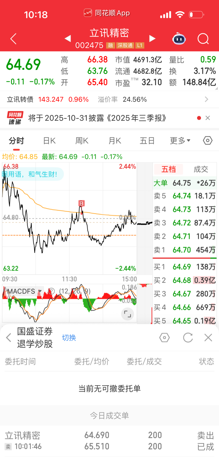 $立讯精密(SZ002475)$ 啥意思啊?今天还能卖票的啊?