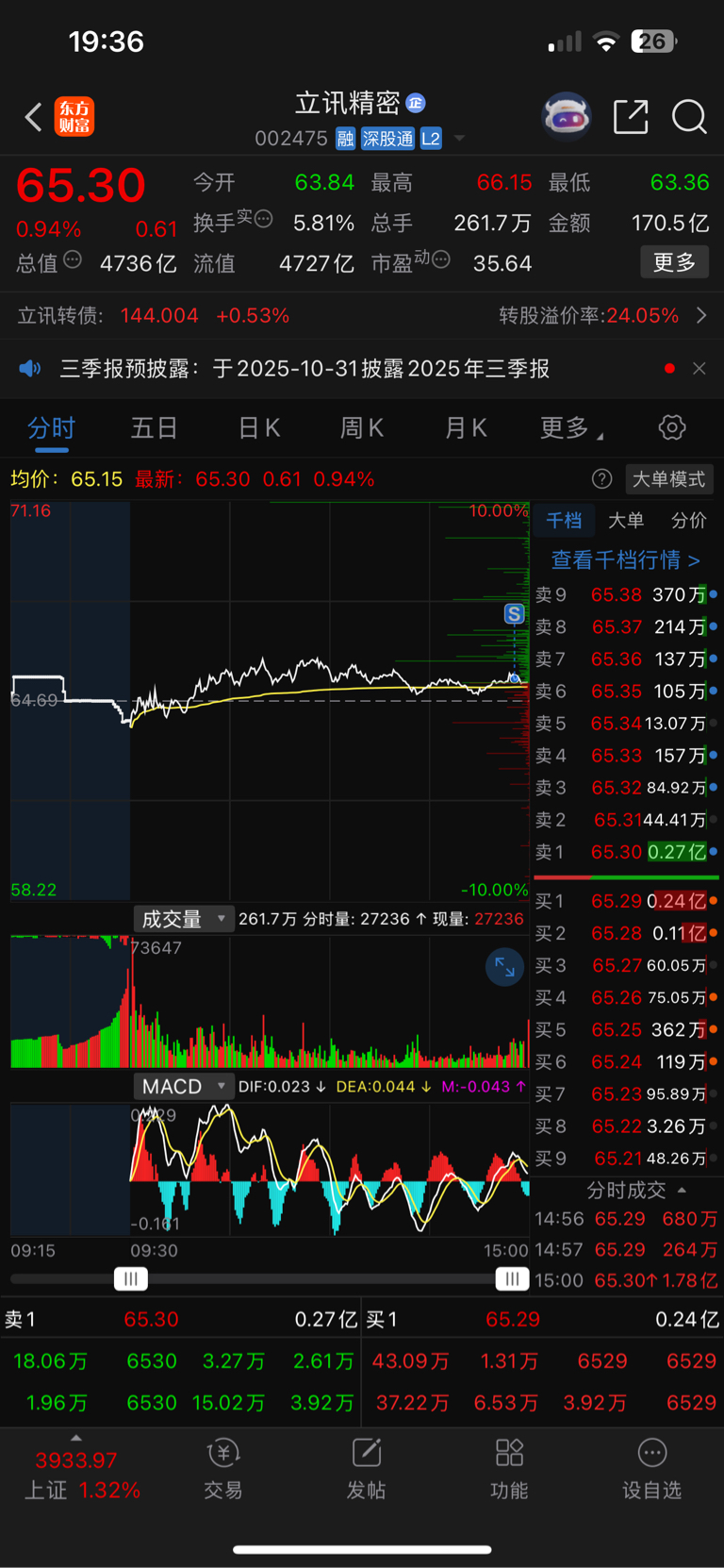 本来想格局一下的,尾盘看了下立讯的筹码线,下方筹码松动,我就出掉了,后来买的亚太