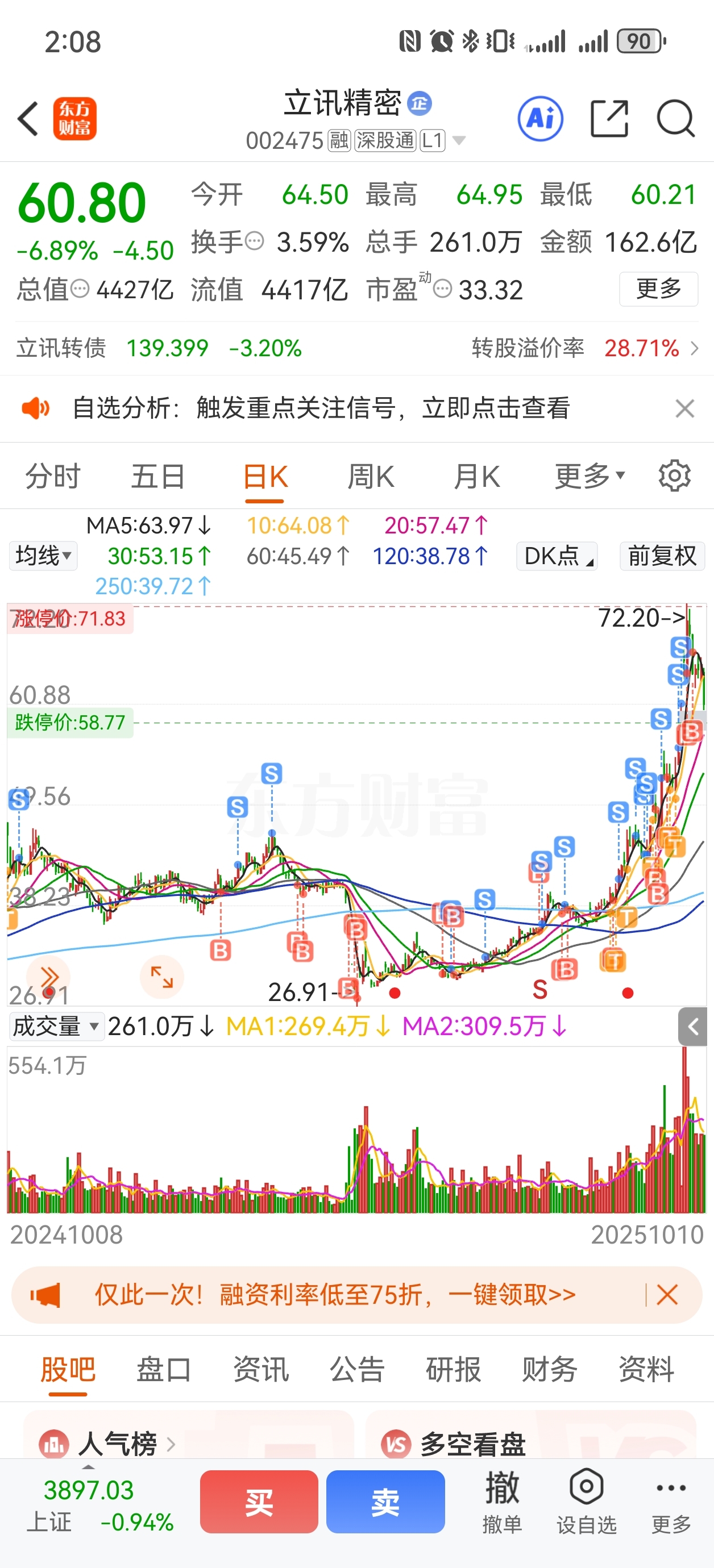 $立讯精密(SZ002475)$ 看了会贴吧,似乎唱空的特别多。就我而言,我感觉现在远不如4月脱钩的那种力度,昨晚苹果也只跌了3个点多,上次跌了十多二十个点。不要被没有筹码的人散布恐慌吓到,回头看,机会都是跌出来的。没有4月那会狠狠加仓,后面也没有这么多收益。