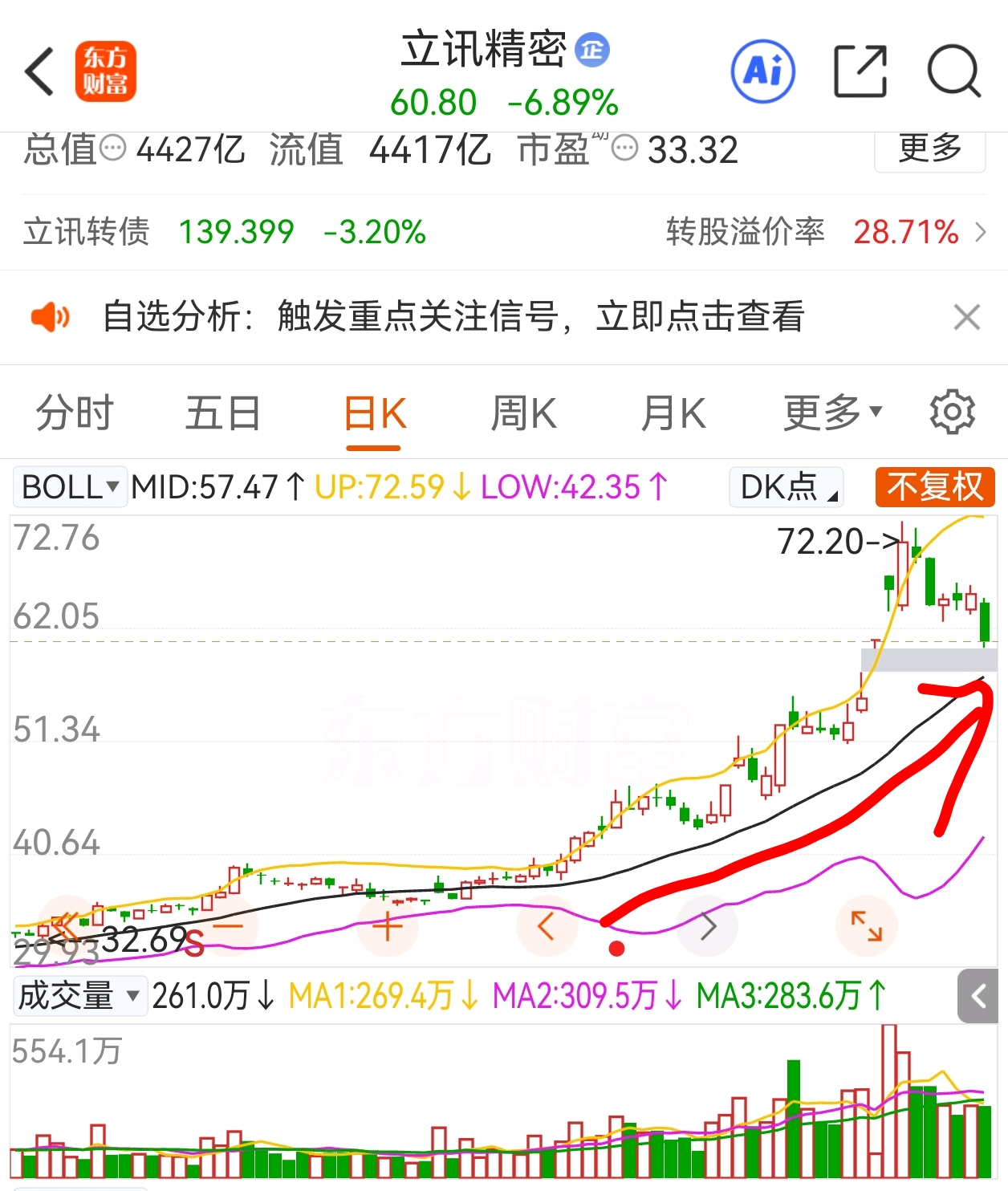 $立讯精密(SZ002475)$ 感觉现在又可以慢慢走趋势了,现在的线越来越平缓了,没有之前90上升的角度了