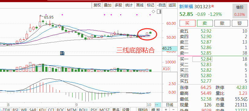 盘后出了个重组利好,公司拟向圣慈科技、广州易上、华农资产、金诚莱收购其持有金南磁材100%股权。之后金南磁材将成为上市公司子公司,本次预计构成重大资产重组。技术上,目前已经出现了底部形态的四线粘合,在横盘这段时间了,甩掉了很多不坚定的浮动码,一旦出现重大利好,很容易出现拉升,大概率会走第二波主升浪行情。