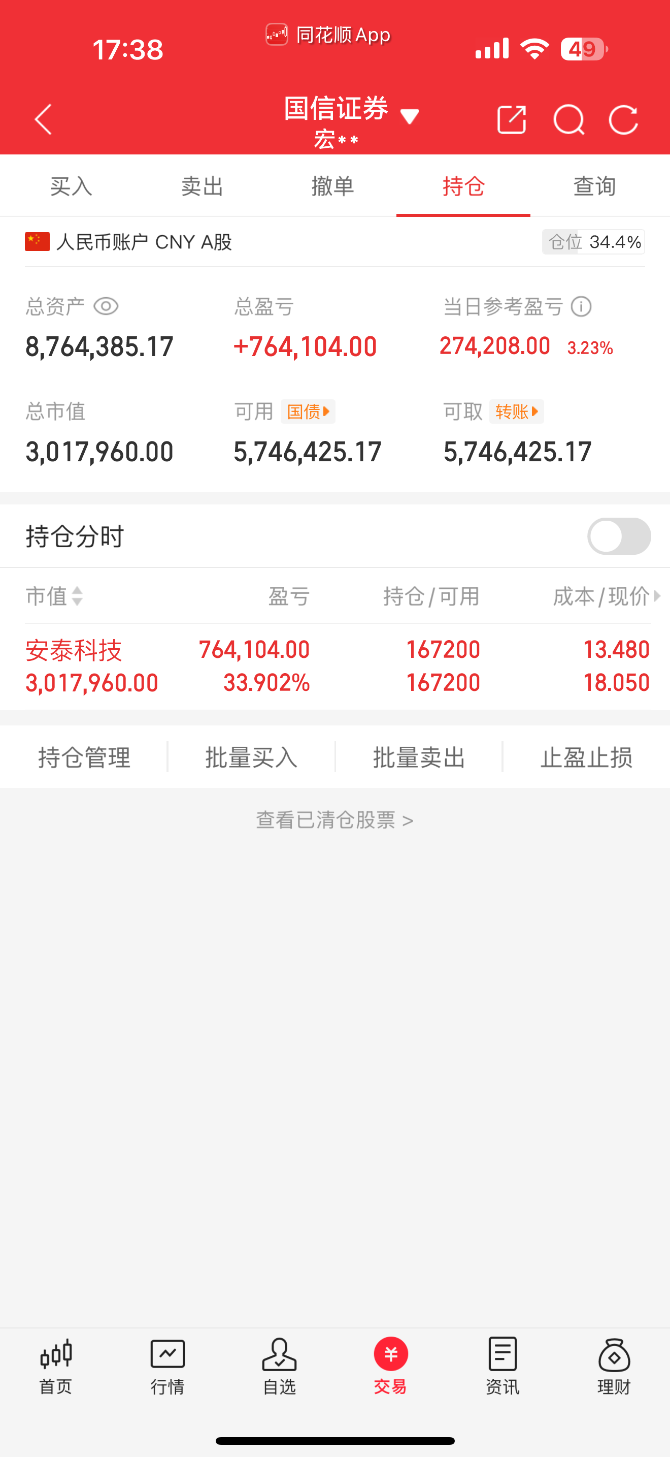 节前买的安泰仓位小了,我20年五十万开始炒股,两年不到就剩十多万了,最难的时候我