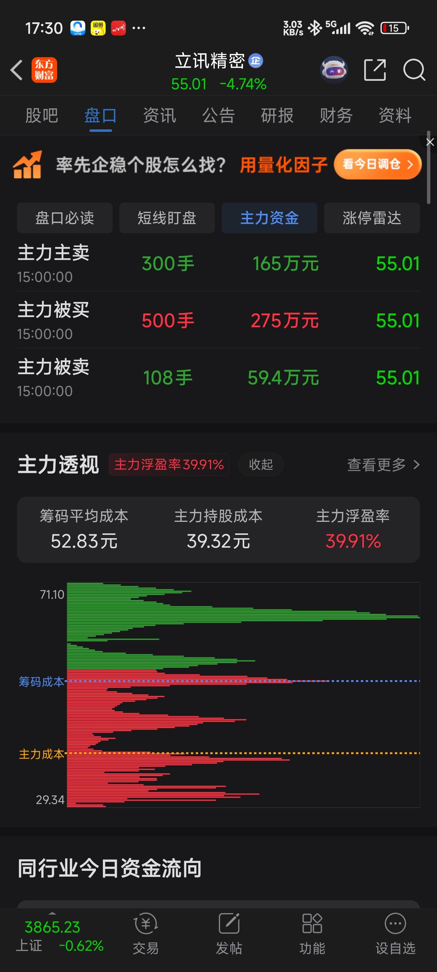 $立讯精密(SZ002475)$ 你们不用到处看了,主力持仓 39多前几天38块多大概50左右会止跌。目前主力还盈利不到40个点