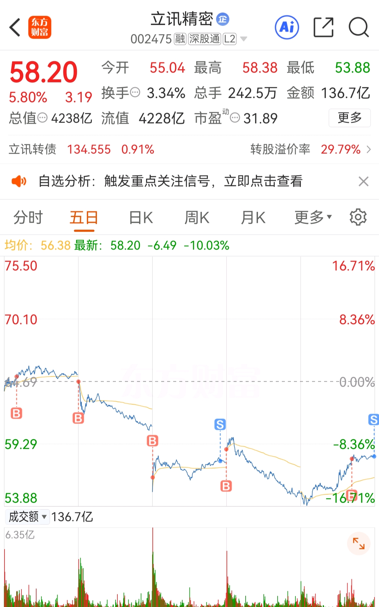 每次下跌都在补仓,是因为看好立讯未来,每次尾盘都在想着要不要把买进去的仓位卖出去