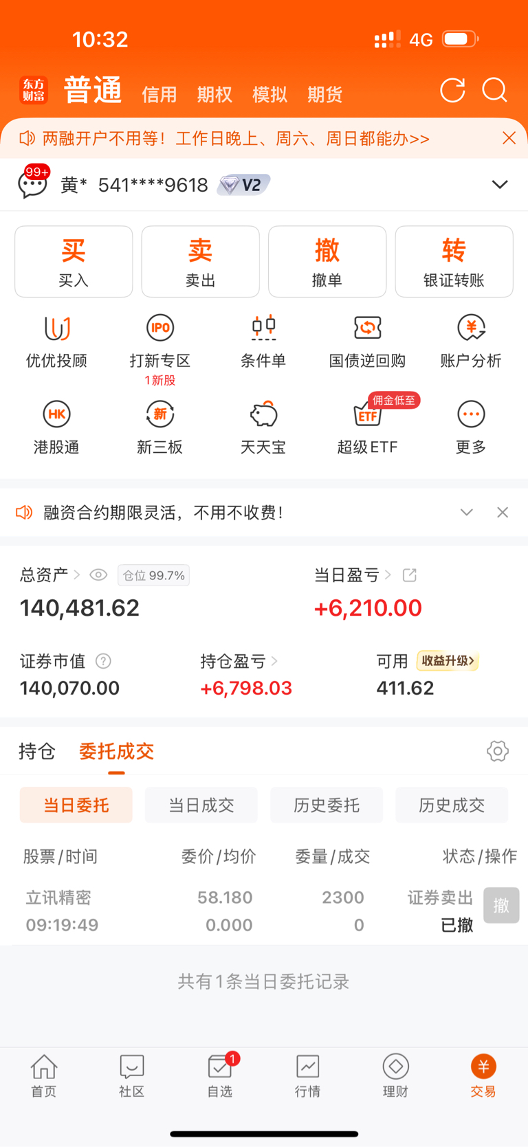 本来早上想卖没卖成撤单了嘻嘻开盘后一直很强势,今天肯定能板在立讯赚了20个点