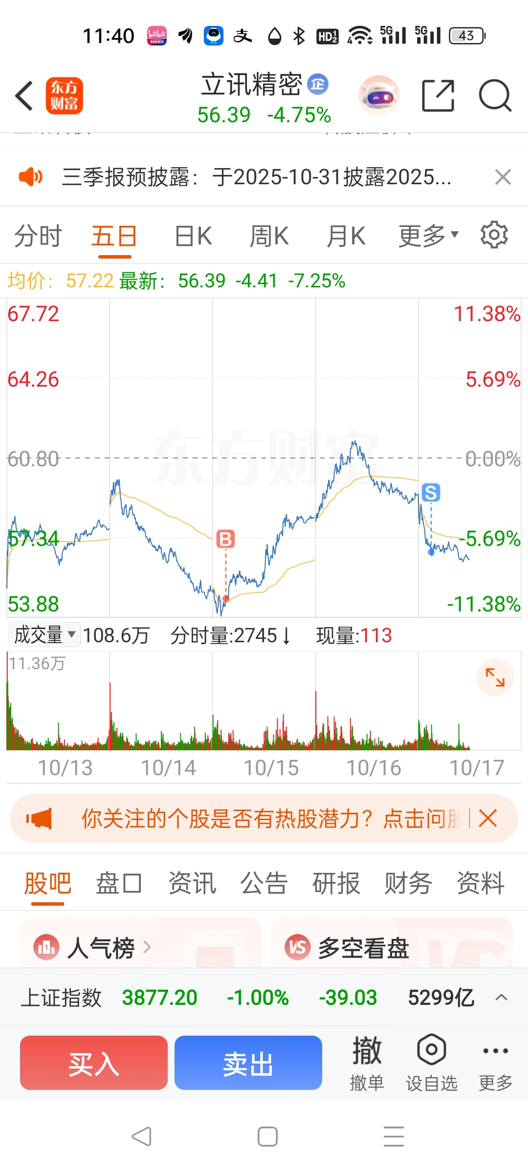 $立讯精密(SZ002475)$ 真是无语了,昨天没跑,今天吃面