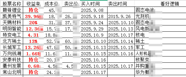 近期持仓记录