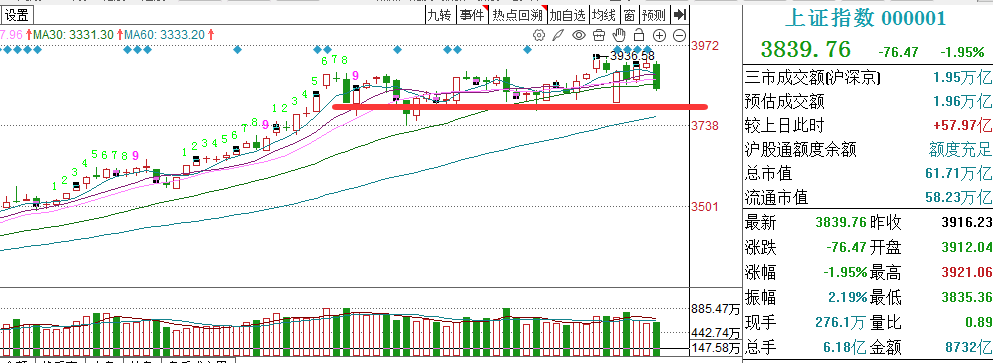 沪指周五一阴穿多线,这是走弱的迹象,今天可能还有惯性回落。但60分钟指标已经接近超卖,但空间应该不是很大,早盘低开先看3800点的支撑。深圳市场走得相对弱一点,深成指和创业板指重心在下移,短线还是继续震荡,要到60日线才有企稳了。大盘接下来短线还是弱势震荡,普跌行情热点切换比较快,个股把握难度也比较大。