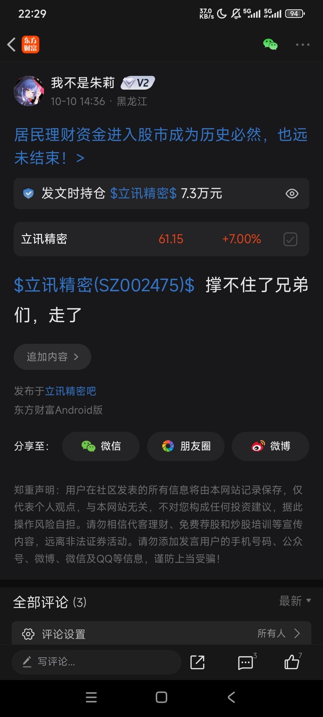 温馨提示: 1.根据《证券法》规定,禁止编造、传播虚假信息或者误导性信息,扰乱证券市场;2.用户在本社区发表的所有资料、言论等仅代表个人观点,与本网站立场无关,不对您构成任何投资建议。用户应基于自己的独立判断,自行决定证券投资并承担相应风险。《东方财富社区管理规定》