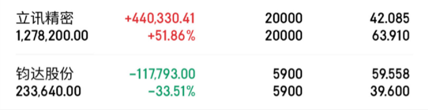 持有立讯精密刚好一年,均达股份从72到39,立讯精密从42到72,两个都是过山车