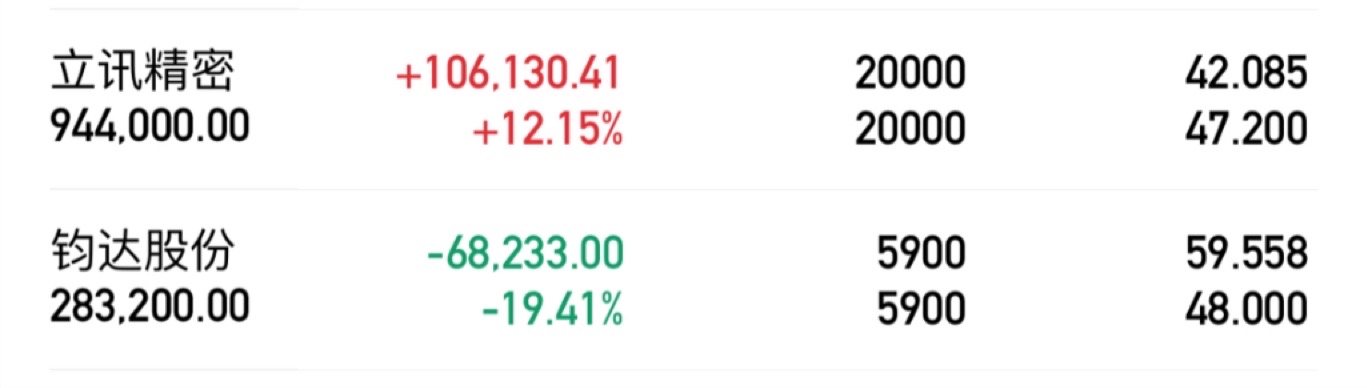 $立讯精密(SZ002475)$ 持有立讯精密刚好一年,均达股份从72到39,立讯精密从42到72,两个都是过山车