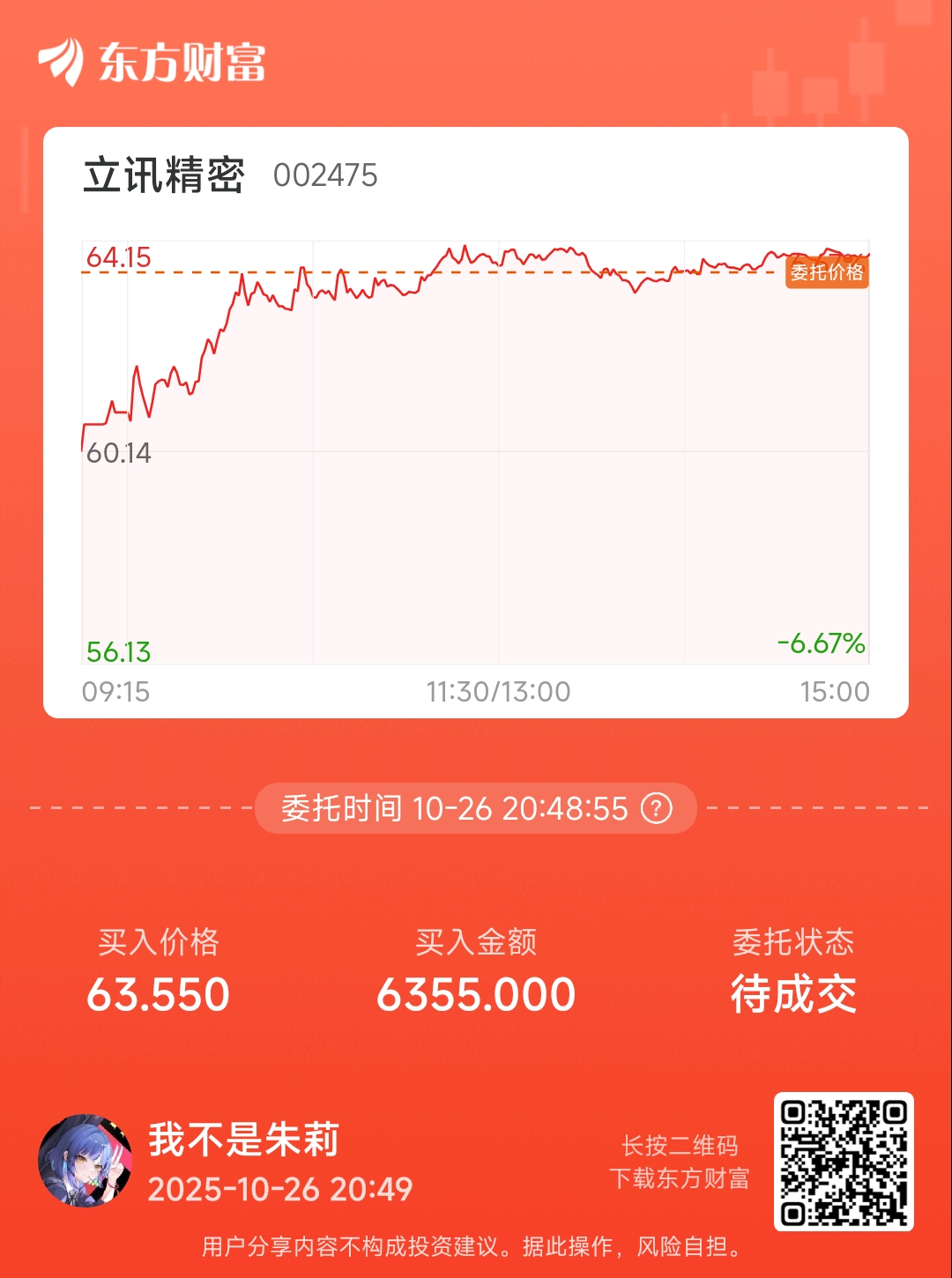 $立讯精密(SZ002475)$ 挂隔夜单斥六千元巨资抢筹!