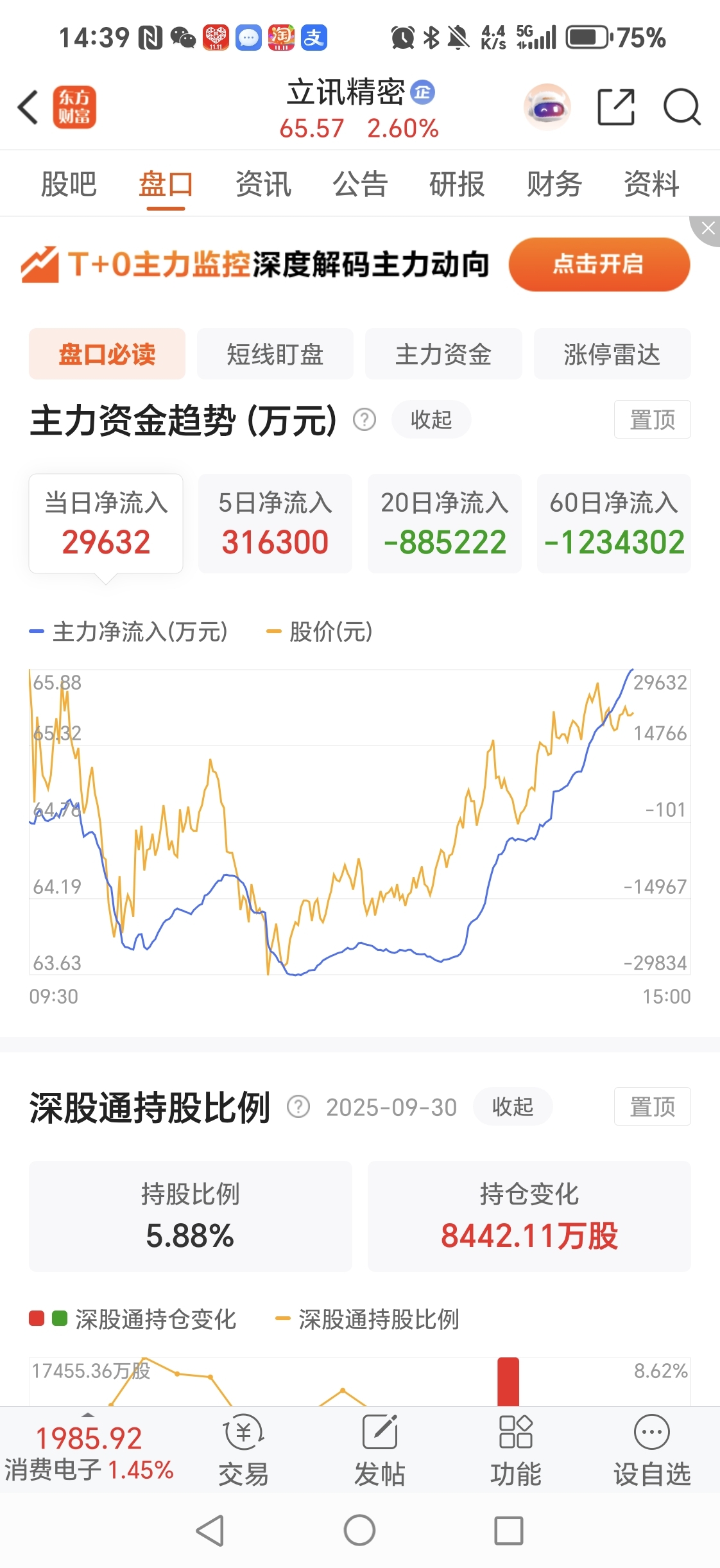 $立讯精密(SZ002475)$ 看主力资金趋势图能看出,主力下午一直资金一直成净流入状态,明天应该还有肉吃吧,我今个开盘进来的,没吃到肉