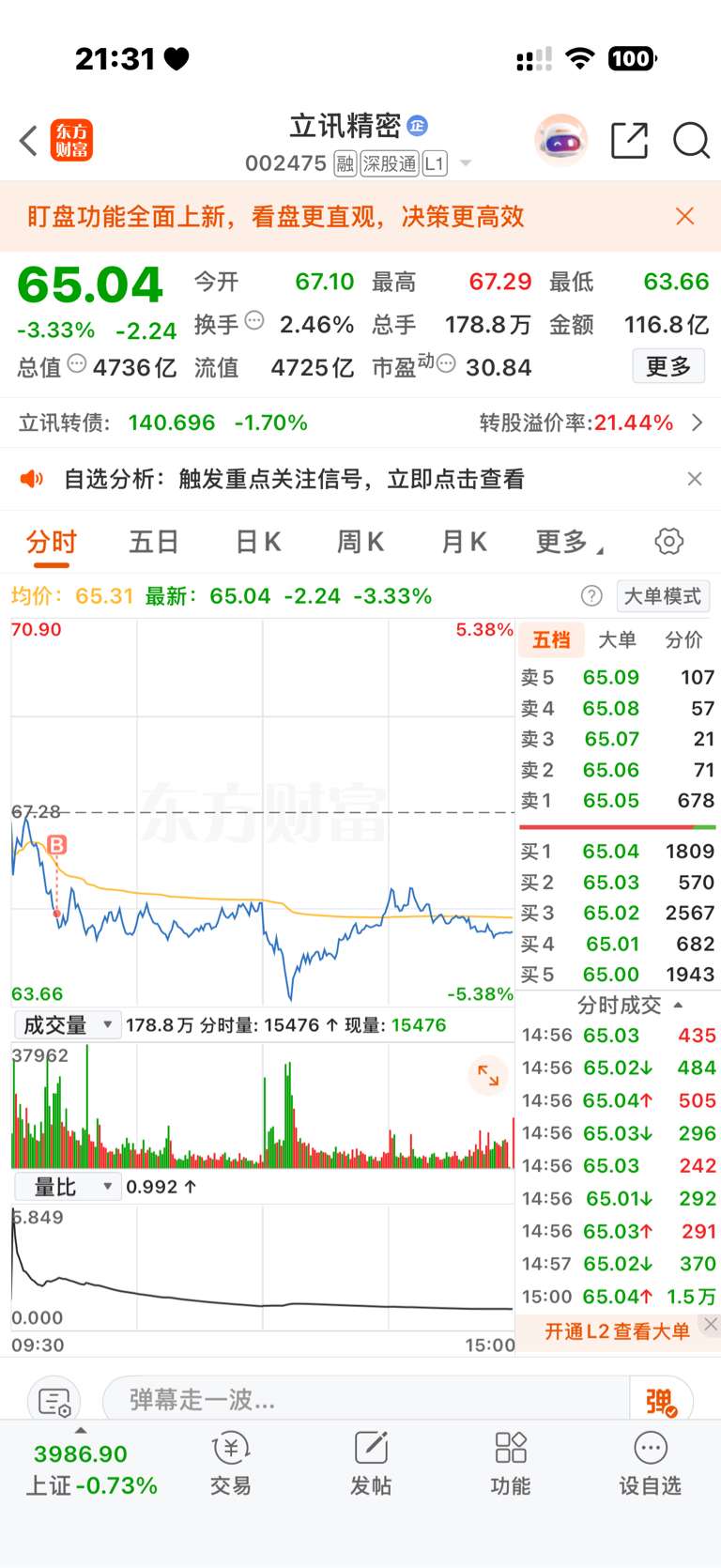 $立讯精密(SZ002475)$ 今天补仓补在半山腰,明天不知道啥情况啊?主要叠加星期五!多多点赞明天立讯涨停,然后带动歌尔涨五个点!