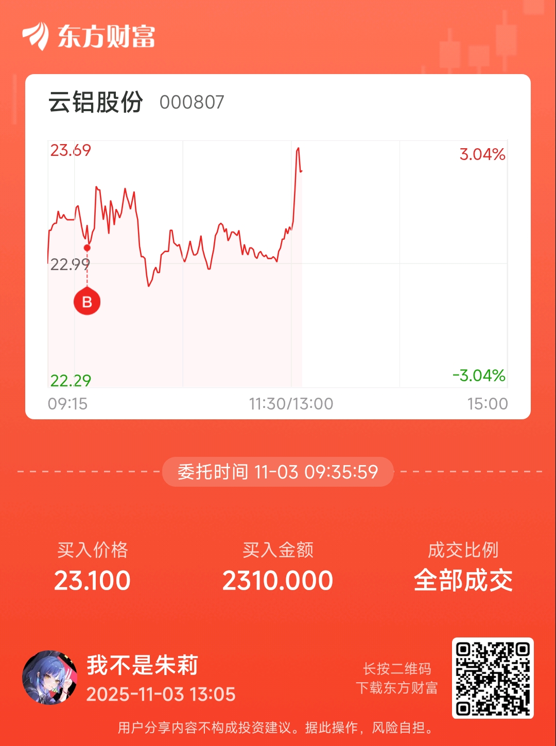 温馨提示: 1.根据《证券法》规定,禁止编造、传播虚假信息或者误导性信息,扰乱证券市场;2.用户在本社区发表的所有资料、言论等仅代表个人观点,与本网站立场无关,不对您构成任何投资建议。用户应基于自己的独立判断,自行决定证券投资并承担相应风险。《东方财富社区管理规定》