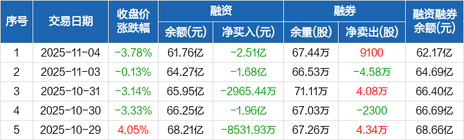 立讯精密:融资净偿还2.51亿元,两市排名第四(11-04)