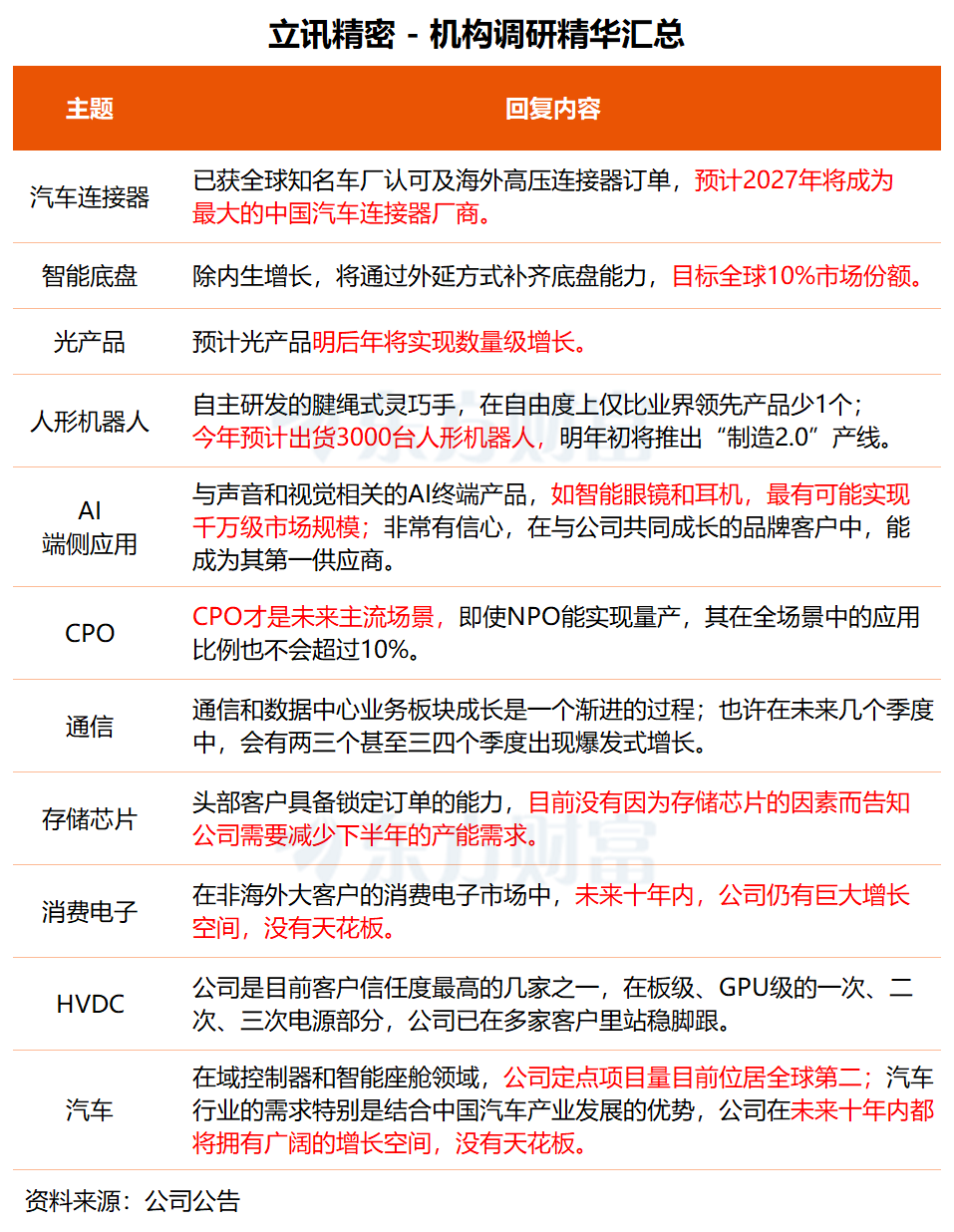 值得注意的是,立讯精密在调研中还透露了公司人形机器人业务的最新进展。