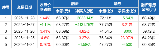 立讯精密:融资净偿还2033.14万元,融资余额68.07亿元(11-28)