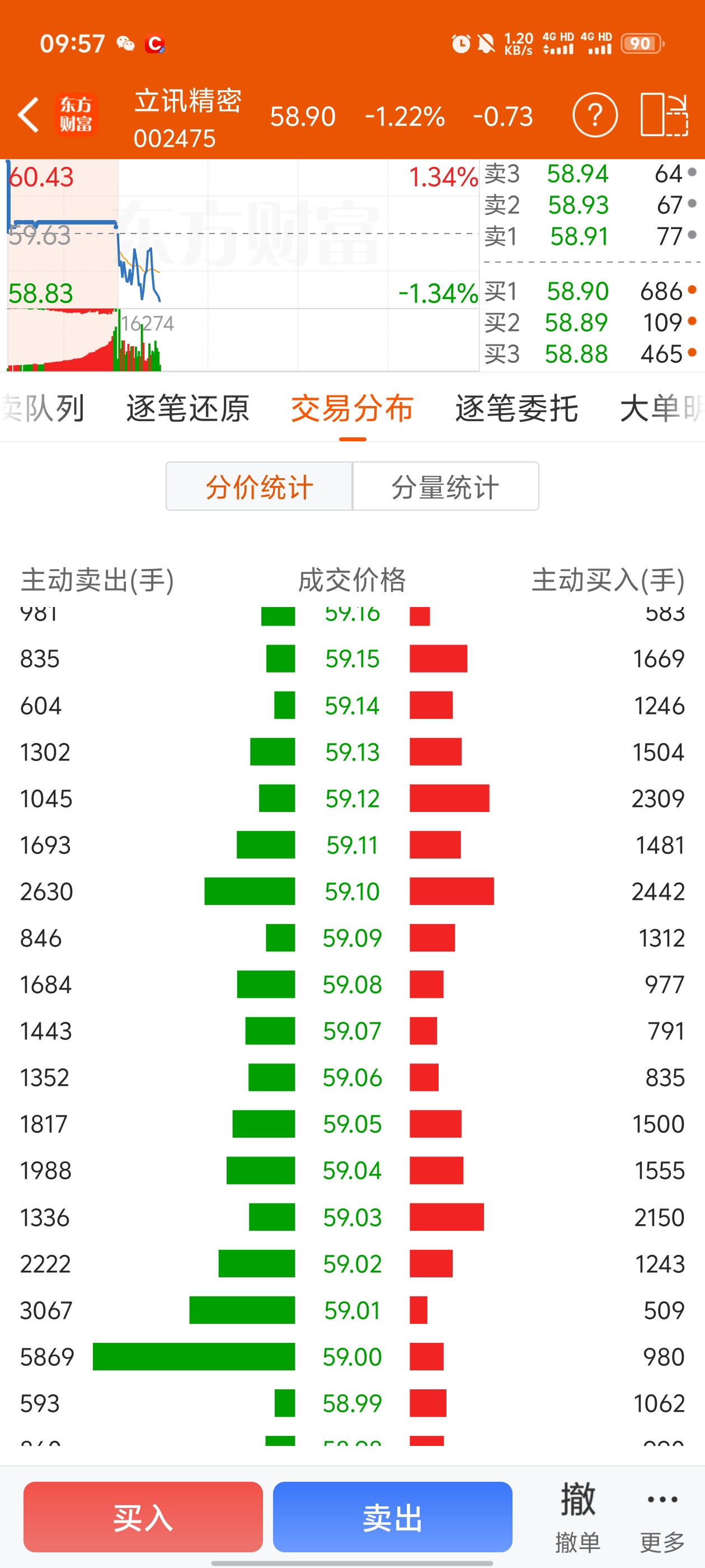 $立讯精密(SZ002475)$ 59卖了5千多手,狗砸