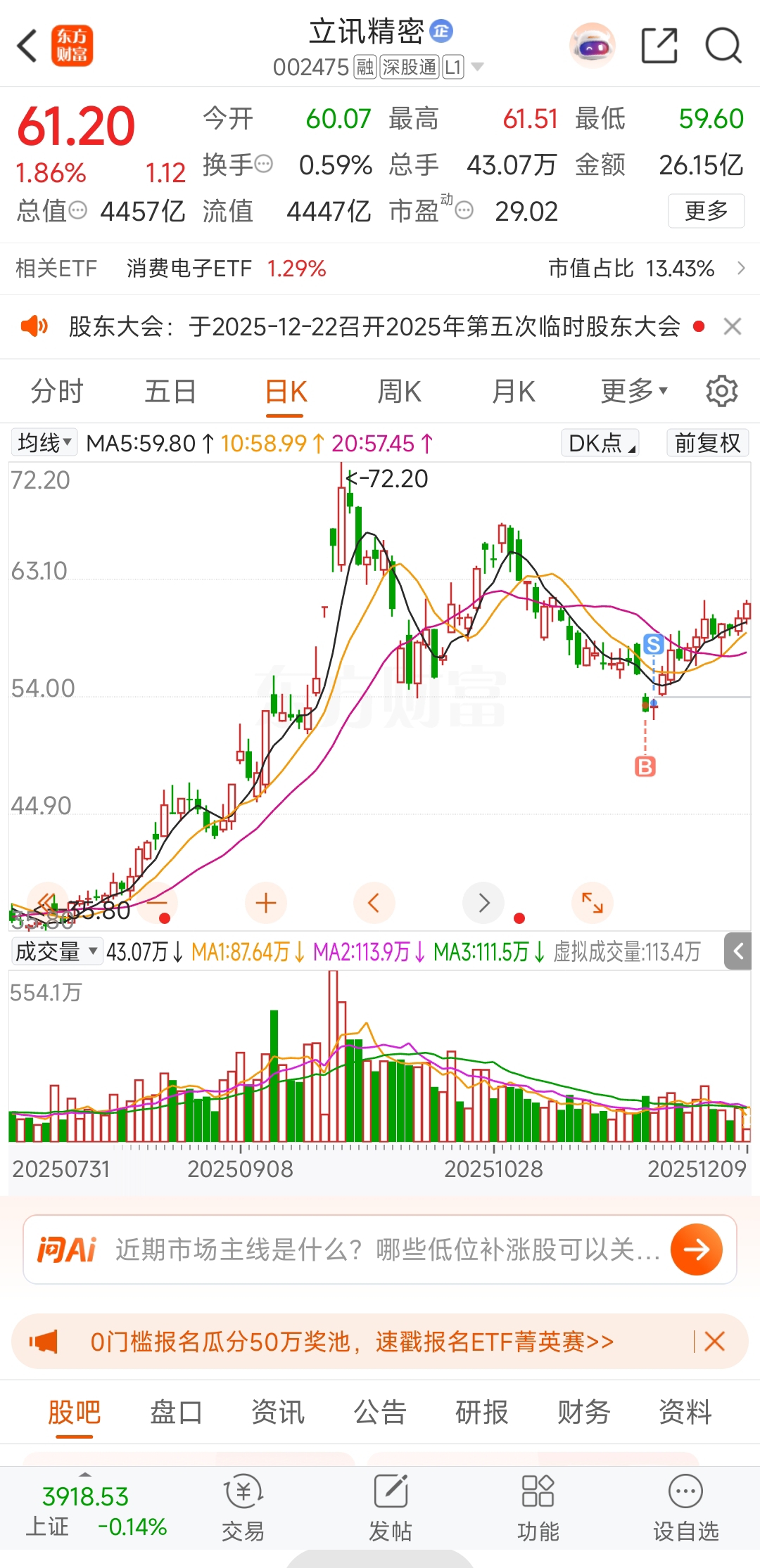 $立讯精密(SZ002475)$ 赚了一小小段
