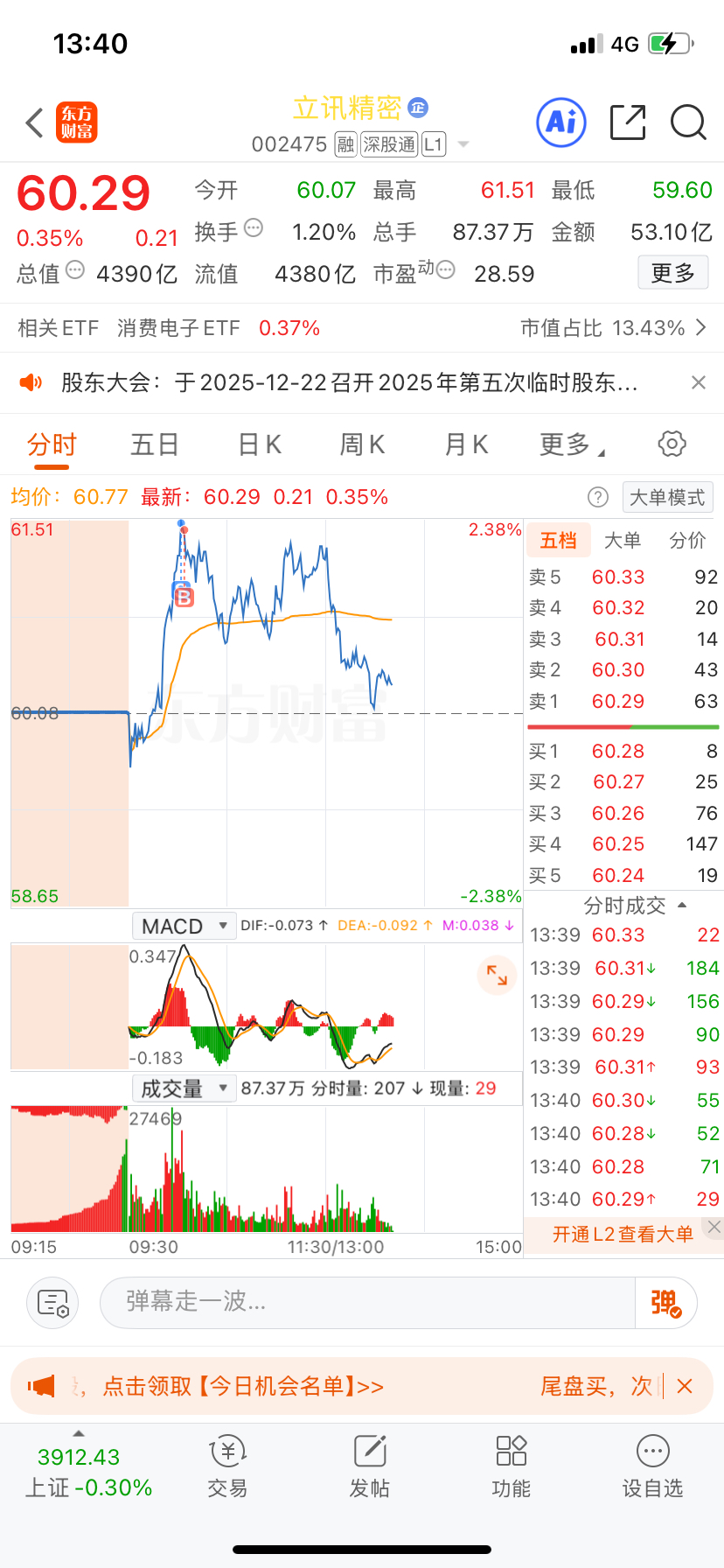 $立讯精密(SZ002475)$ 还好我跑的快,买了一手,回来,随便你跌
