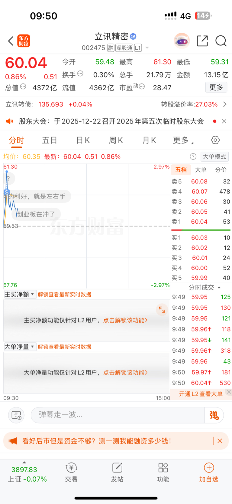 $立讯精密(SZ002475)$ 各位留下的发财,解套了、赚了一个点不到!
