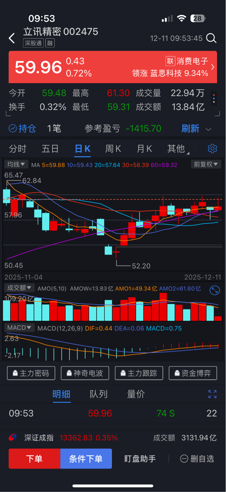 $立讯精密(SZ002475)$ 我的成本线好像是他的压力线,我特么真对不起大家啊