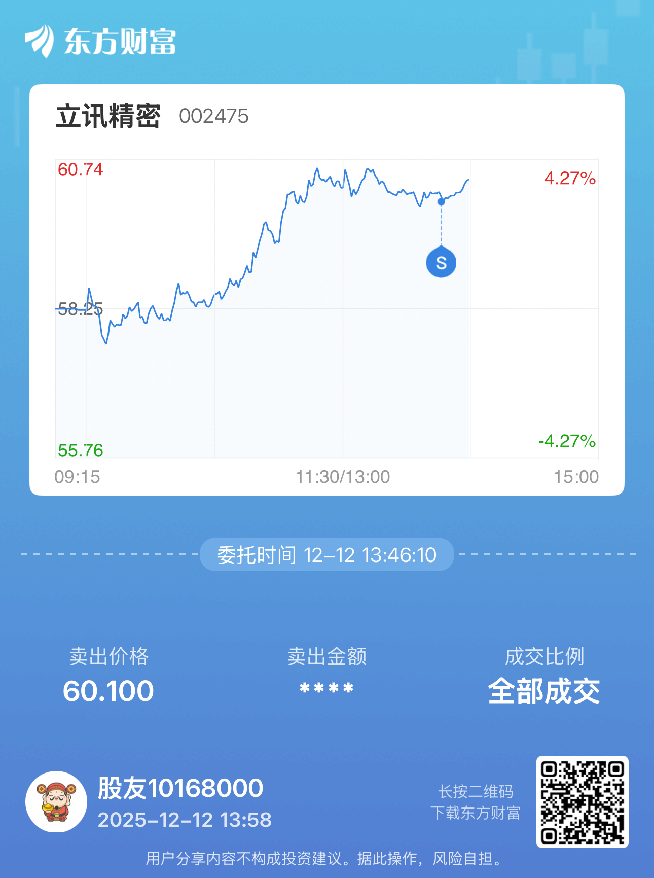 $立讯精密(SZ002475)$ 已清仓,主力可以拉升了