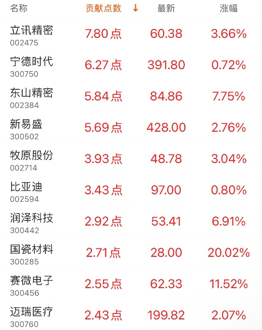 指数贡献榜:立讯精密贡献7.8点