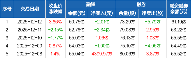 立讯精密:融资净偿还2.01亿元,融资余额60.75亿元(12-12)