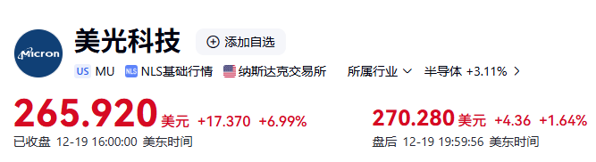 美光连续上涨17%,盘后拉升。英伟达,甲骨文,闪迪,超威半导体大幅上涨