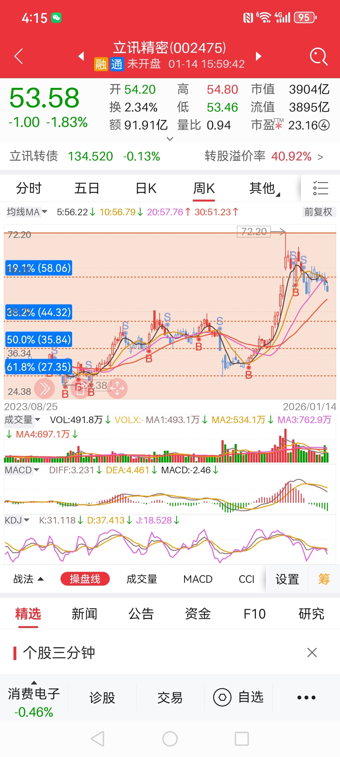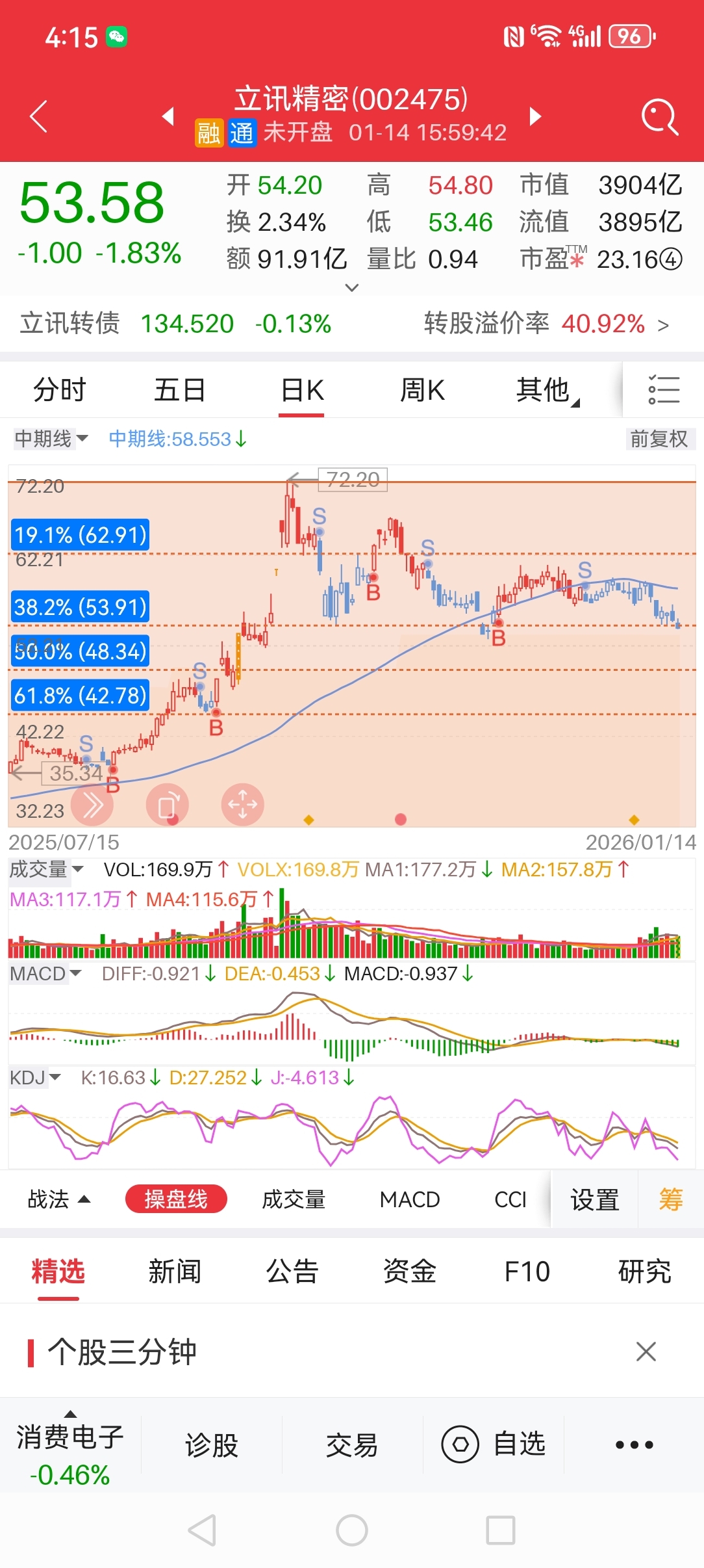从技朮分析的黄金分割位看还未到,从形态分析也未到位。年报巳报披露,底牌都知道了,弃购闻泰是好事。既然有52元的价格那么一定要次要碰及,50元下方为什么不可以到呢?主力操盘的特征是波段,再次下跌是A一B一C其中的C段,A=C基本套路,仓位轻的不服输的可以加仓,厌跌者可以观望看戏。下跌途中常有反抽都是半日游1日游或者三日游,适合T操作。