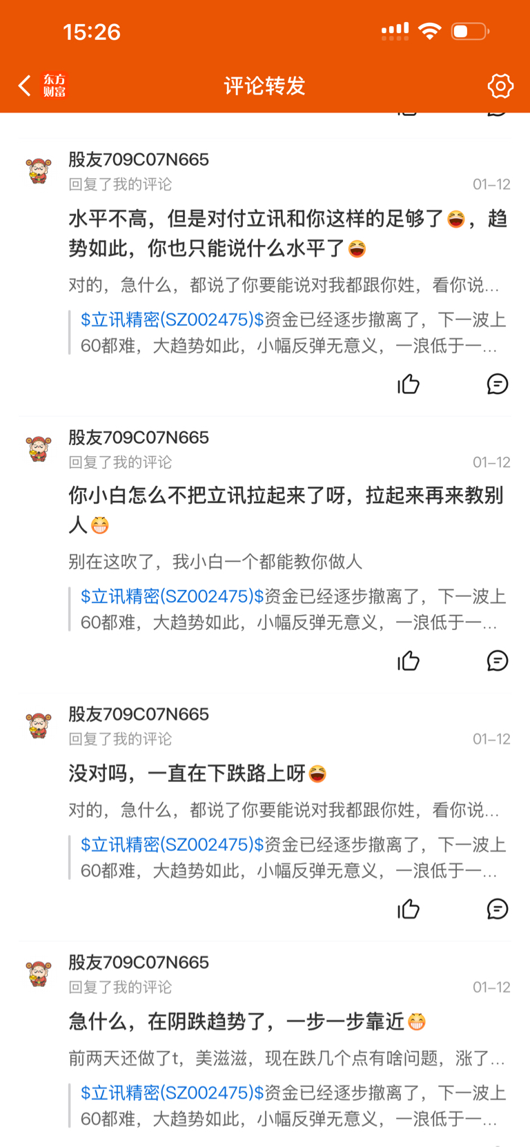 $立讯精密(SZ002475)$ 勾叫?懂王?今天就教你做人,昨天跌一点赶紧出来叫,今天连之前的回复都删了?还犟嘴不?有些人,股票本来就是有涨有跌。你不看好不买不就行了,非得出来当空勾,你不是韭菜是什么,好心人帮我艾特一下这个韭菜根,艾特不了他