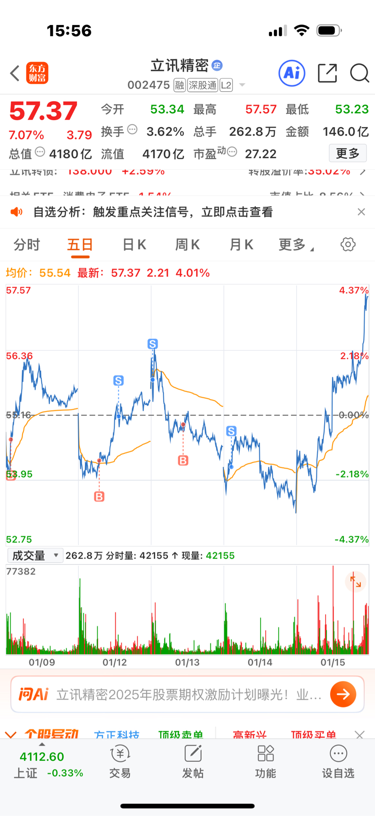 $立讯精密(SZ002475)$ 谢谢我吧,昨天刚割肉走人、你今天就起飞!
