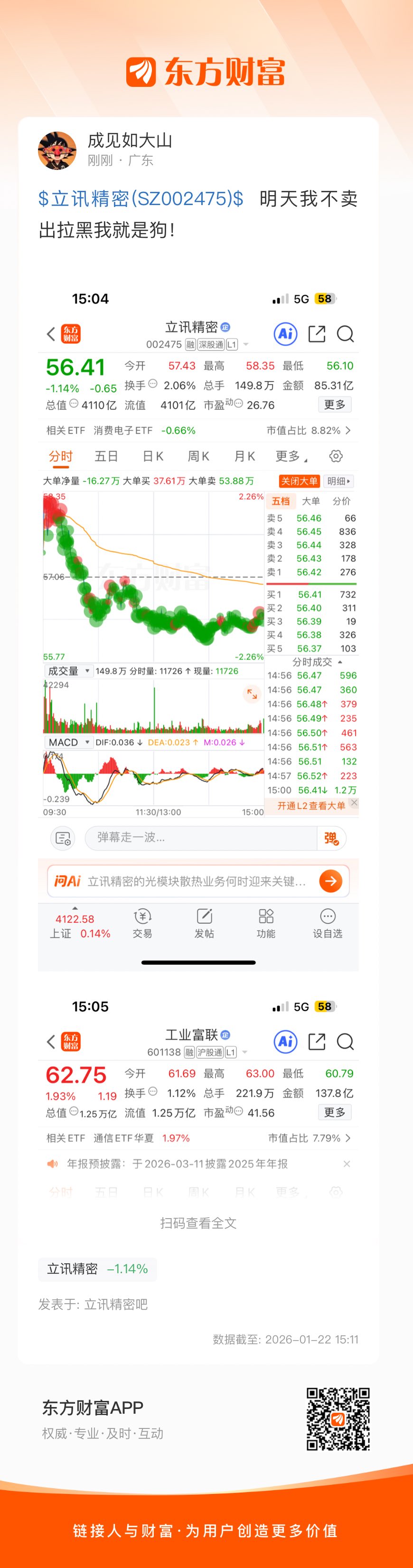$立讯精密(SZ002475)$  明天我不卖出拉黑我就是狗!