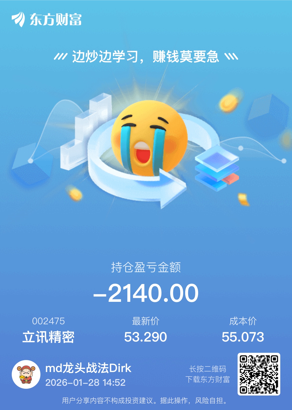 温馨提示: 1.根据《证券法》规定,禁止编造、传播虚假信息或者误导性信息,扰乱证券市场;2.用户在本社区发表的所有资料、言论等仅代表个人观点,与本网站立场无关,不对您构成任何投资建议。用户应基于自己的独立判断,自行决定证券投资并承担相应风险。《东方财富社区管理规定》