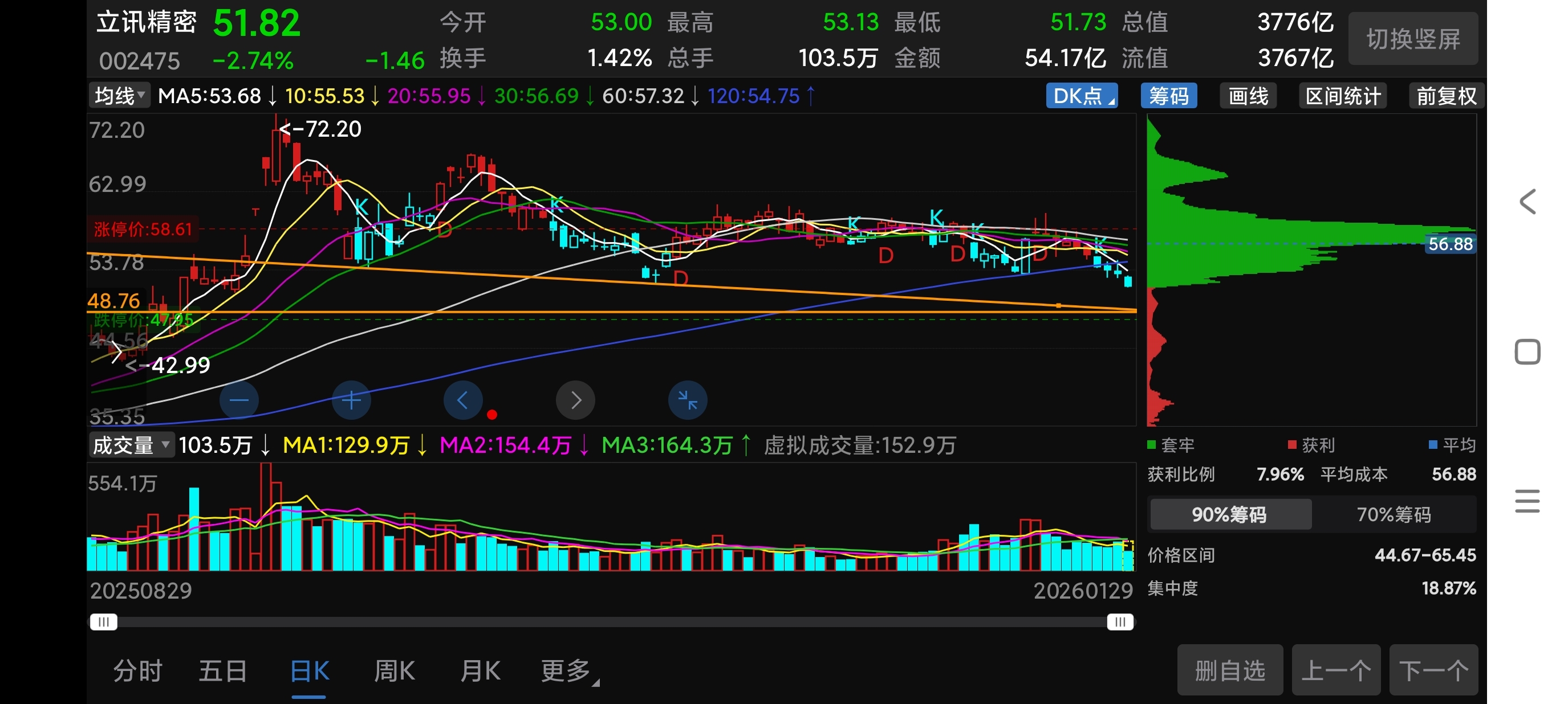 $立讯精密(SZ002475)$ 破49能否支撑,再考虑是否抄底,看图参考