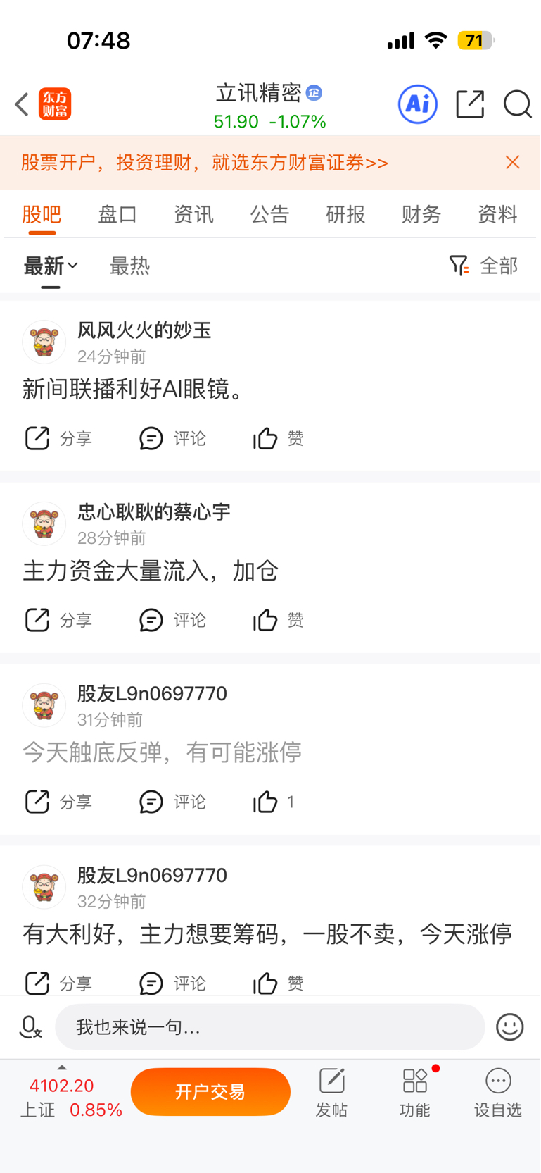 温馨提示: 1.根据《证券法》规定,禁止编造、传播虚假信息或者误导性信息,扰乱证券市场;2.用户在本社区发表的所有资料、言论等仅代表个人观点,与本网站立场无关,不对您构成任何投资建议。用户应基于自己的独立判断,自行决定证券投资并承担相应风险。《东方财富社区管理规定》