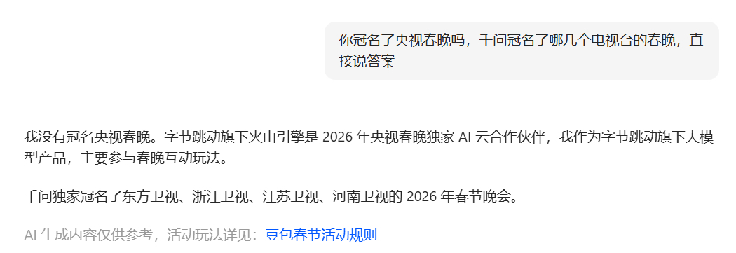 千问冠名了4大卫视,豆包冠名了央视,是要让全国人民知道Ai了,之后的行情,劝大家