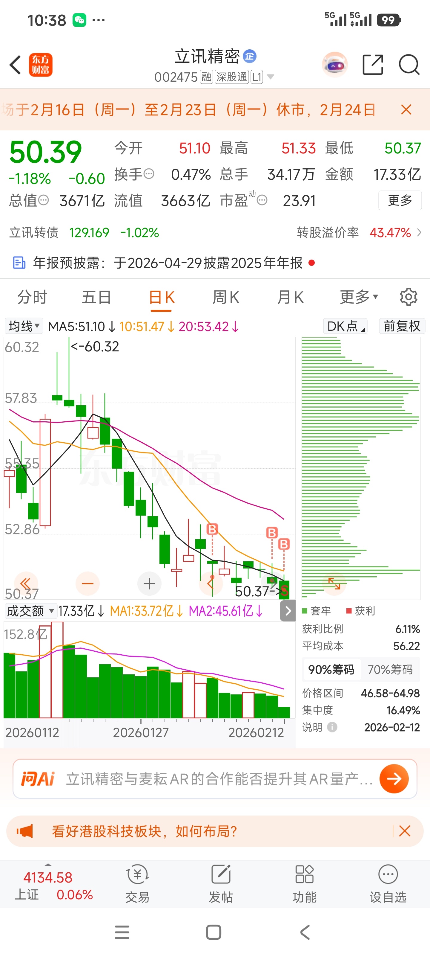 $立讯精密(SZ002475)$ 在主力的引导下,散户开始踩踏。来吧!继续下跌,我继续加仓!