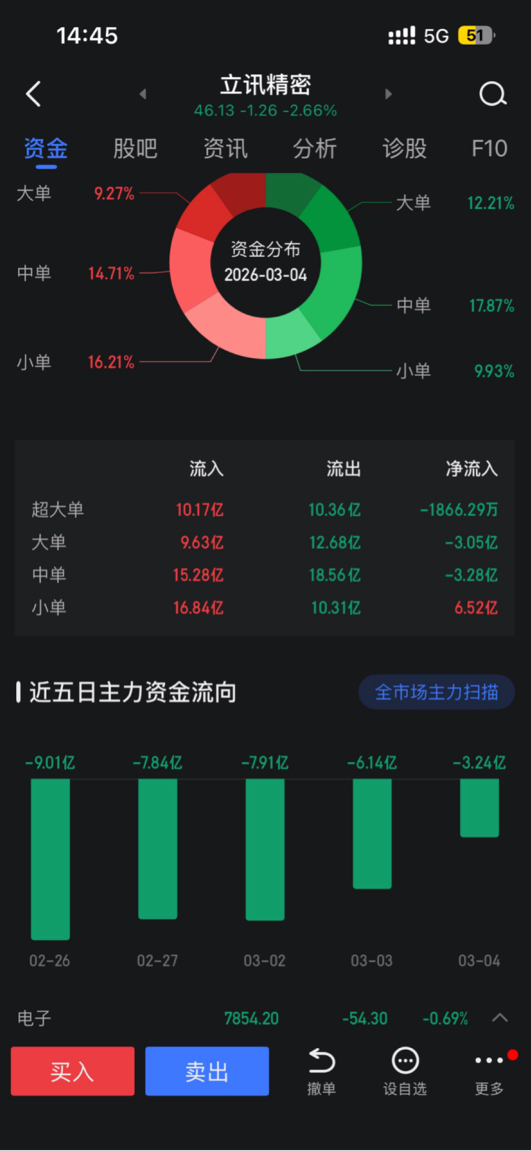 $立讯精密(SZ002475)$ 利好,主力流出在减少