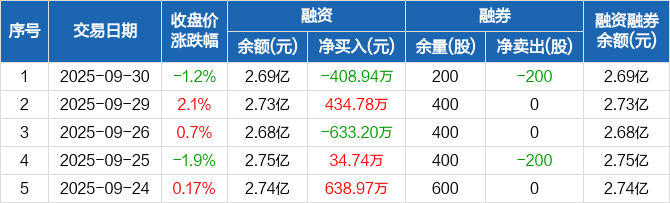 宝莫股份:融资净偿还408.94万元,融资余额2.69亿元(09-30)