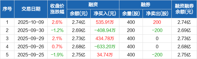 宝莫股份:融资净买入535.91万元,融资余额2.74亿元(10-09)